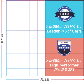 ITreview Grid Awardとは、ITreviewで投稿されたレビューをもとに四半期に一度ユーザーに支持された