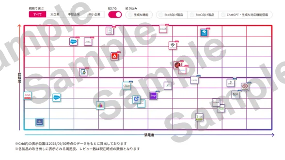 国内最大級のB2B向け IT製品/SaaSのレビュープラットフォーム「ITreview(アイティレビュー)」を運営するアイティクラウド株式会社(本社:東京都港区、代表取締役社長 兼 CEO:黒野 源太)は、ユーザーの声(ユーザーレビュー)に基づいて、顧客に支持された満足度の高い製品を選出する「ITreview Grid Award 2025 Fall」を発表しました。