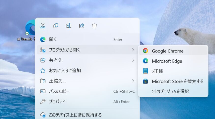 作成したスライドをChatGPTの画面以外から表示したい場合、Canvasのブロック右上メニューからHTMLファイルをダウンロードし、ダウンロードしたファイルを「右クリック → プログラムから開く → ChromeやEdgeといったブラウザを選択」することで別画面での表示が可能です。