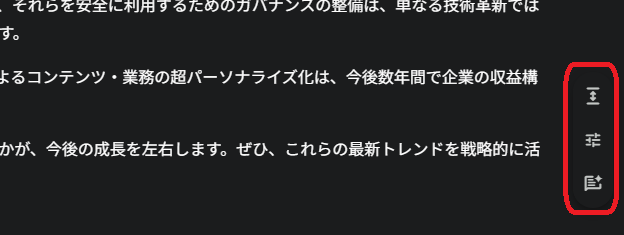 通常のチャットでは「ここを直して」をプロンプトに書き込む必要がありますが、Canvas機能ではドラックで選択して修正箇所を指定することが可能です。そのため、より細かい選択ができることに加えて「意図しない箇所の修正」を軽減することができます。