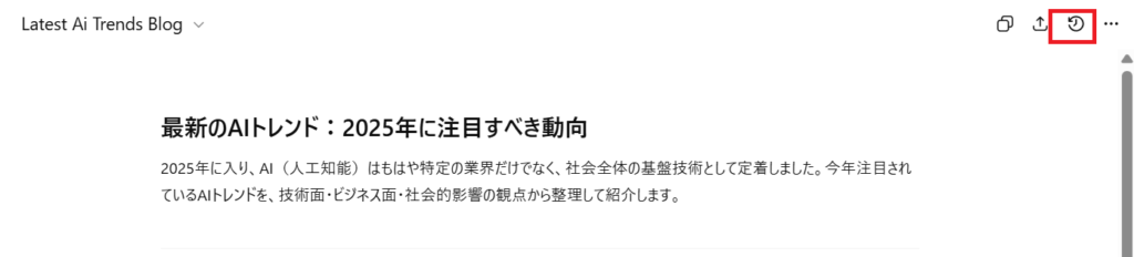 修正された内容については、バージョン管理による差分確認が可能です。編集画面右上の時計マークをクリックします。
