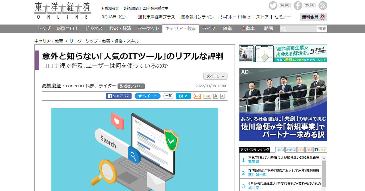 ITreviewのアクセスデータやGrid、各カテゴリーに集まったレビューが、東洋経済オンラインに取り上げられました。