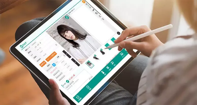 スタイル写真の取り込みや施術内容の記録ができ、タブレットを使ったカウンセリングに活用できる